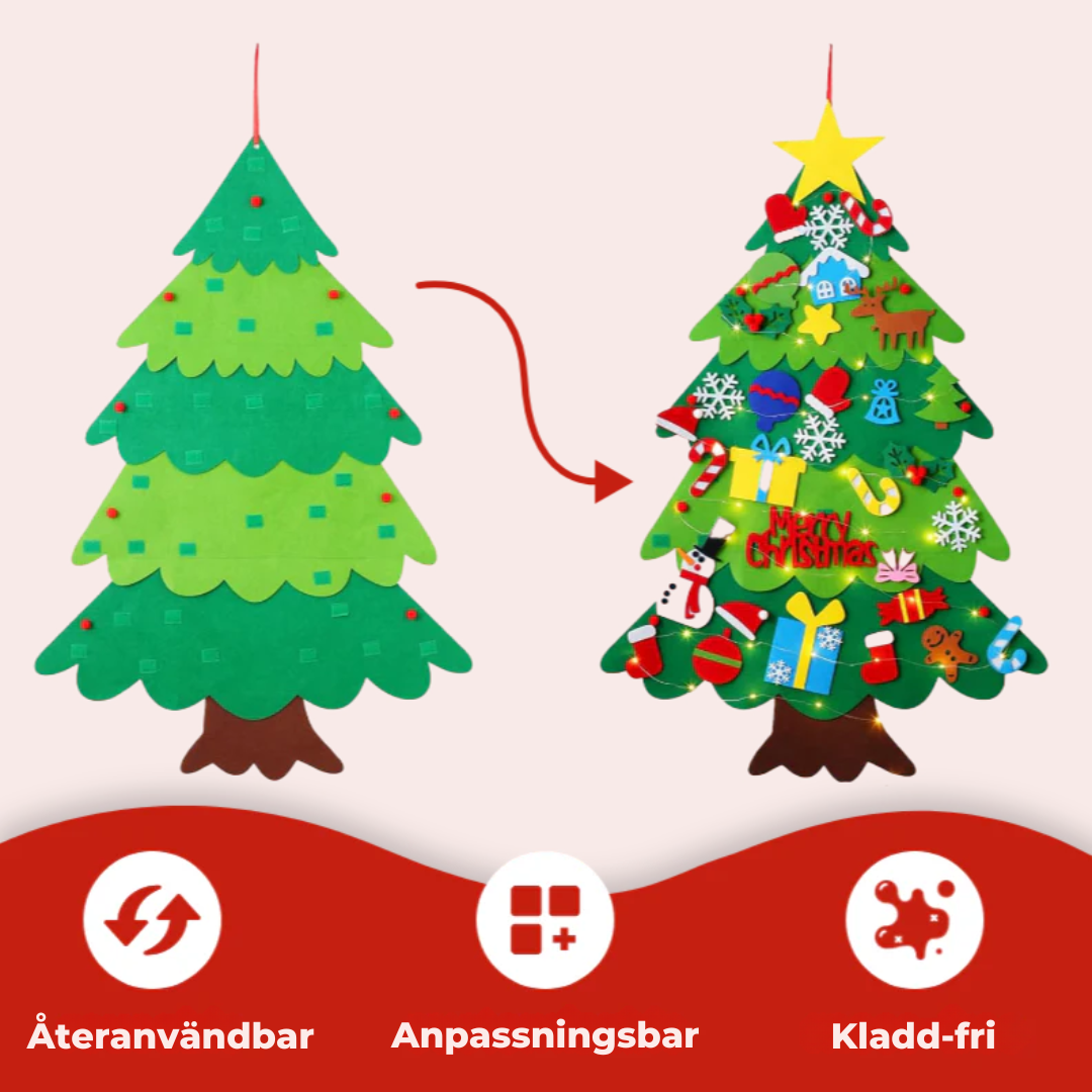 Med KnatteGran får du inte bara en julgran. Du får en utvecklande leksak som stärker ditt barns färgigenkänning, sorteringsförmåga och finmotorik. Det mjuka filttyget gör granen 100% säker för små händer, och de färgglada, avtagbara dekorationerna uppmuntrar till kreativt skapande och problemlösning. Glöm oro för trasiga julgranskulor eller smådelar som kan sväljas – KnatteGran är utformad med småbarnens säkerhet i åtanke.